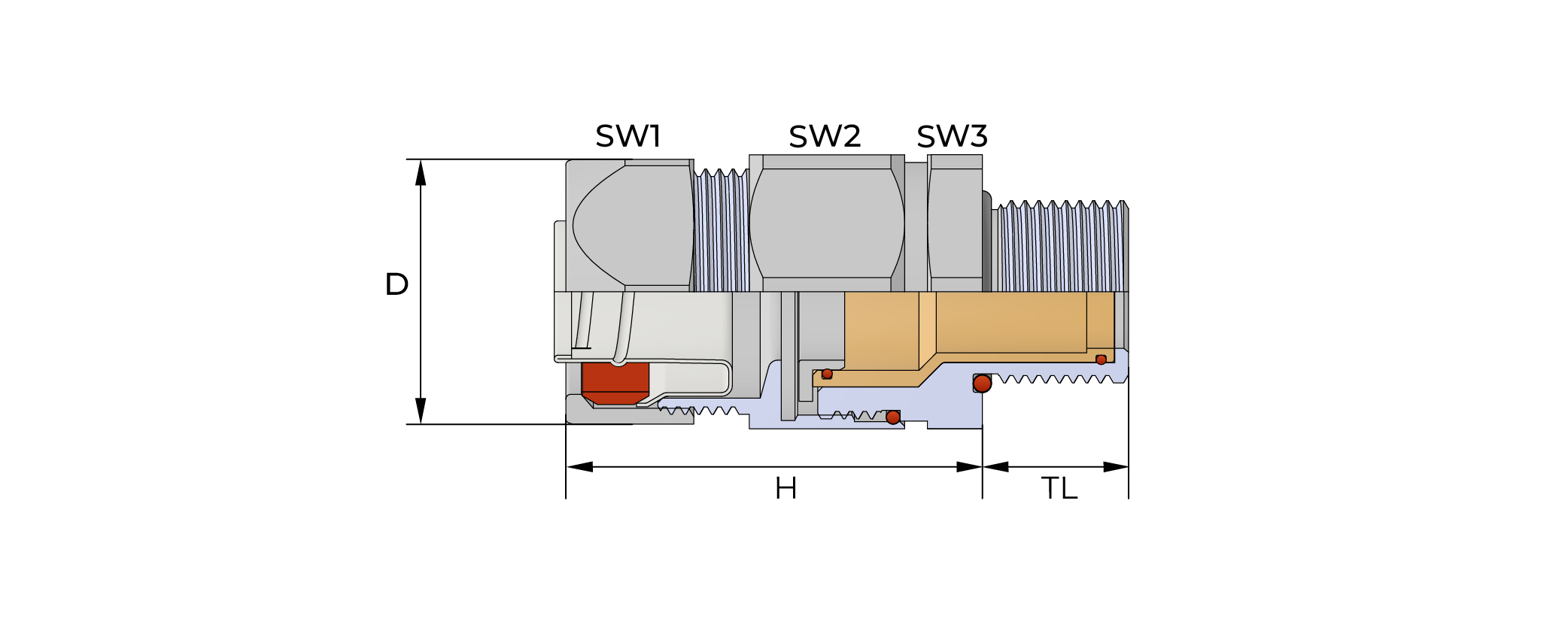 Barrier sealing hazardous area conduit fitting, suitable for unarmoured cables in flexible conduit.