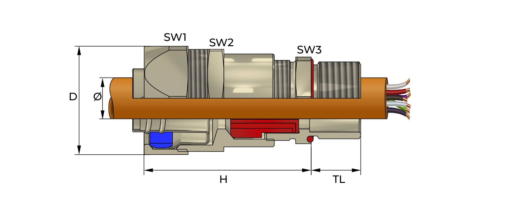 The rear seal provides IP and retention of the flexible conduit. The unique 3-part inner seal ensures the best seal can be achieved with the lowest tightening torque.