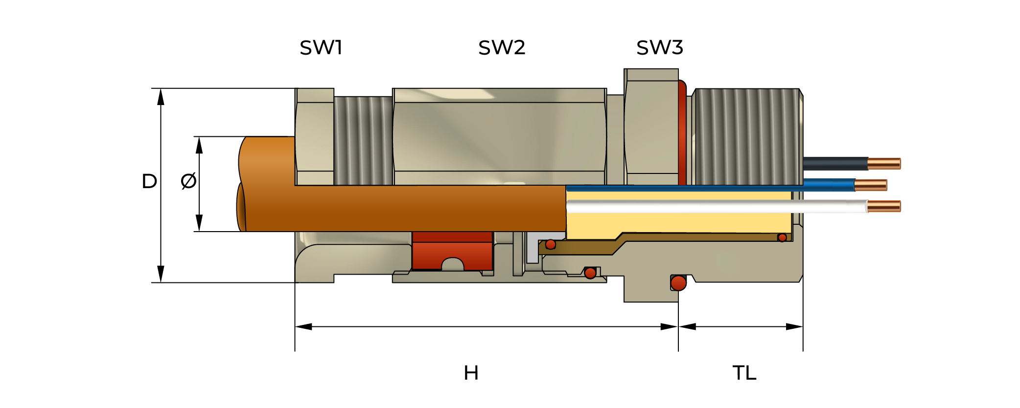 The gland provides a flameproof compound seal around the individual cable cores, making this suitable for cables which exhibit "cold flow" characteristics.
