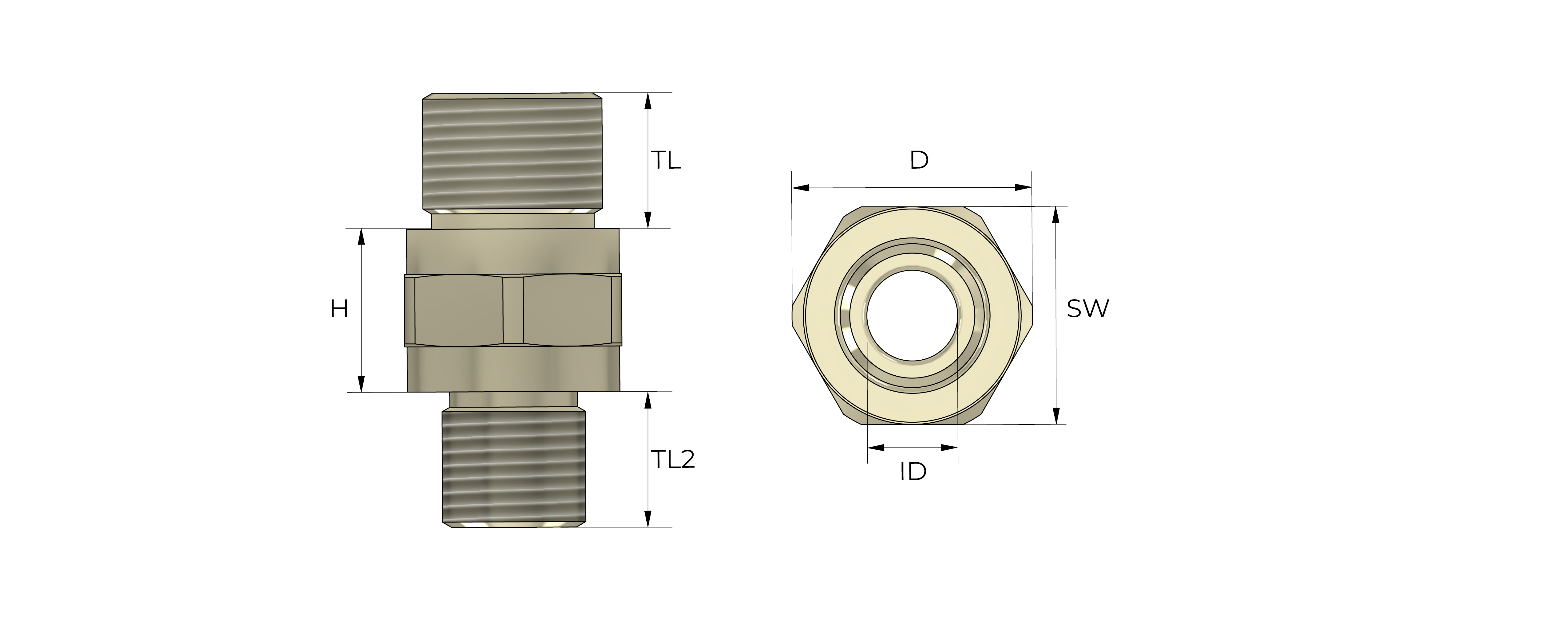 Nipples for the transition of different thread types and sizes.
